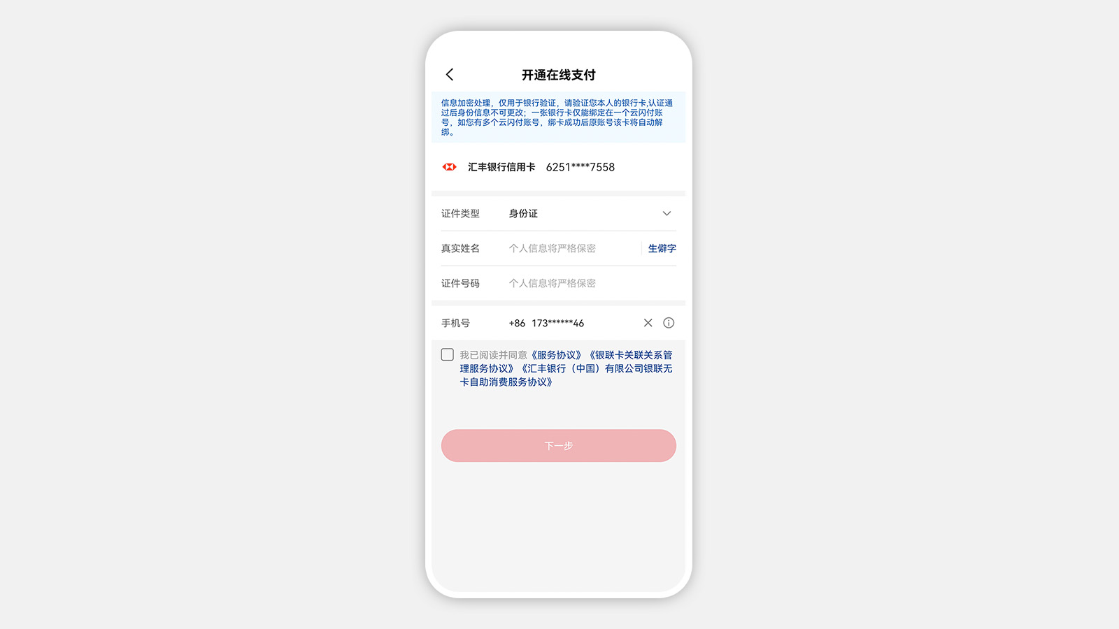 汇丰银行(中国)有限公司针对汇丰中国信用卡持卡人现已支持Apple Pay服务,是一种能够实现安全、快速支付的焕然一新的移动支付方式。