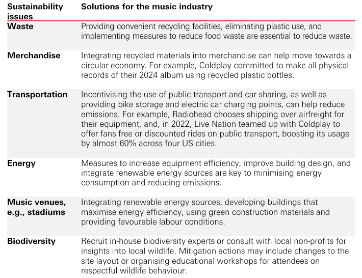 Industry stakeholders and researchers have suggested several steps to improve the sustainability of the music industry, which we summarise in Figure 2.