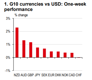 Over the past week, the NZD led the performance among G10 currencies, with the AUD and GBP following closely (Chart 1), driven by specific domestic factors.