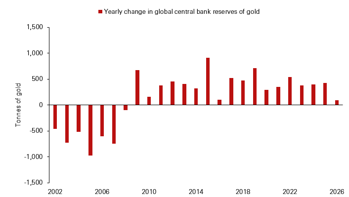Central bank demand has cooled from the peaks seen between 2022 and 2024, and some central banks have sold gold to preserve FX reserves amid higher energy import bills and defence spending. Even so, central banks' demand should improve later in the year as long-term diversification policies reassert themselves.