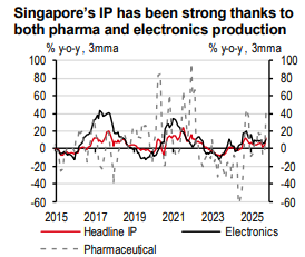 The data breakdown showed most of the upward revision came from manufacturing, which grew over 11% q-o-q seasonally adjusted. Electronics drove industrial production (IP) growth notably. This mirrors the trend in tech-driven economies, where AI-driven demand and trade front-loading have boosted growth.