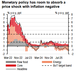 Given all the moving parts, we recently adjusted our growth forecast to 1.6% in 2026 (from 1.7%). In addition, Thailand’s exposure to oil also makes its inflation outlook susceptible to changes in global oil prices; hence, we also increased our inflation forecast for 2026 to 1.2% (from 0.6%)