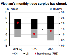 No doubt, the frontloading effect is obvious. The manufacturing pillar saw strong growth of more than 10% y-o-y, reflecting the urgency of producers and exporters to rush to ship exports to the US in 2Q25. This is also reflected in record-high quarterly exports, growing over 18% y-o-y in 2Q25.