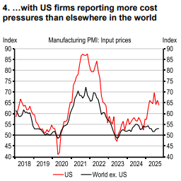 While these tariffs are causing turbulence in global trade flows, the US is already experiencing an uptick in inflation, particularly in core goods. Products like headphones, motor vehicles and parts, and strikingly, bananas, are already seeing a surge in prices. However, headline CPI and PPI figures are masking these underlying pressures, as lower rental and energy prices continue to offset much of the tariff-driven impact.
