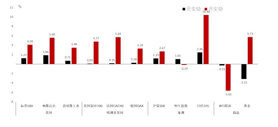 数据来源:万得,汇丰私人银行,截至前一个交易日收盘,过去数据不代表未来表现。WTI指西德州中级原油。法国CAC40指数指巴黎券商公会指数;德国DAX指数指法兰克福指数。