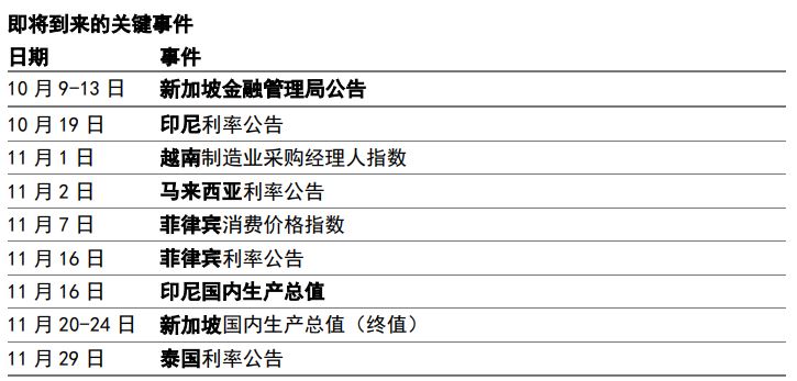 印尼虽然受到商品价格下跌的拖累,但年初至今的增长情况仍好于预期。由于美联储保持鹰派立场,印尼银行放松政策的空间可能更小。 随着全球贸易陷入低迷,新加坡不可避免地受到影响,尽管由于内需强劲,新加坡仍有望避免经济衰退。越南也受到出口需求下降的拖累,尽管随着政府提供更多支持,未来一年的经济增长应该会加快。在泰国,到目前为止,旅游业并没有人们此前预期的那样“繁荣”,但游客数量应该仍会增加,且财政宽松政策可能会让泰国银行保持警惕。同样,在菲律宾,在强劲的“经济重启”之后,经济增长略有放缓,可能需要再次调整货币政策来应对居高不下的物价。相比之下,马来西亚的通胀保持稳定,但出口下滑也导致经济增长的上限降低。