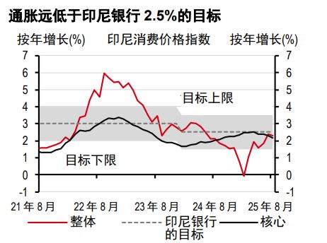 印尼疫情后的国内生产总值增长持续疲软。尽管 2025 年第二季国内生产总值增速达 5.1%,高于预期,但我们估计其国内生产总值仍比疫情前的趋势水平低 7.5%左右。制造业采购经理人指数、信贷和消费者信心等高频指标也指向经济疲软。