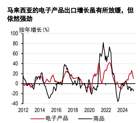 这正是可以划清界线的地方。泰国的商品出口一直表现出色,实现两位数增长,因为在关税预期下,进口商的需求提前释放。但当不可避免的反噬效应到来时,我们认为其程度不会像许多人预期的那么严重。