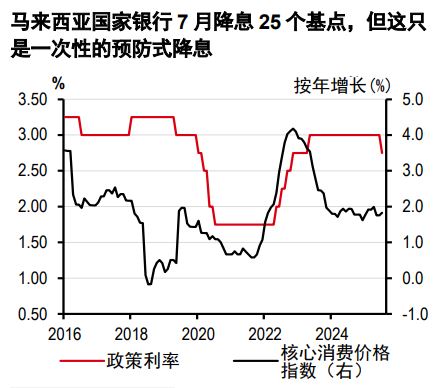 虽然市场的注意力自然集中在关税风险上,但同样重要的是观察马来西亚的国内韧性。所幸的是,马来西亚的私人消费表现良好,加上投资两位数增长,至少能在短期内部分抵消一些外部风险。我们将2025年增长预测维持在4.2%,并且基于关税前景更清晰,近期将2026年增长预测从3.9%上调至4.0%。